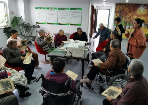 第二站我馆的工作人员主动走出展馆,走进敬老院,为老人们带去书法艺术。10月18日,我们的馆员来到了金色晚年康复养老中心,为老人们宣讲焦山碑林的书法文化,并带去了书法练习的水写布和焦山碑林精品图录作为慰问礼物。通过这种方式,为敬老院中生活枯燥的老人们带去更积极健康的娱乐和消遣。参与此次活动的老人许多尚是第一次接触书法写作,但在馆员们的积极引导下,他们很快对这门传统艺术产生了浓厚兴趣。吴老太说她这一辈子没动过笔,结果老了到学起了书法,这让她感到自己的老年生活更有动力、有作为了。此次慰问礼物中的水写布,是可以直接蘸水书写毛笔字的新式书法练习用具,省去了传统写字所需的备纸备墨的复杂环节,蘸水即可书写,水干后仍可重复使用,为老人们接触和学习书法有很大便利,也响应了“智慧助老”的主题。