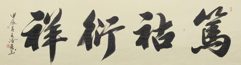王泽飞,中国一线实力派书法家,国家一级美术师,国礼特供艺术家,著名榜书大家。1963年7月生,浙江义乌人,大专学历。受父辈影响,自幼喜欢写写画画,临摹了历代名家王羲之、柳公权、颜真卿、欧阳询等碑帖。正、行、草、隶、篆各体兼能,尤擅特大抓笔俯地书写1-4米见方的正体、行草书,篆刻、小楷也具相当功底。