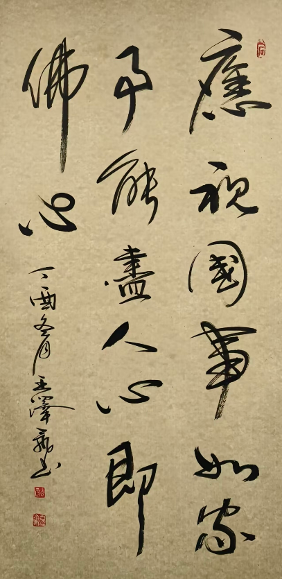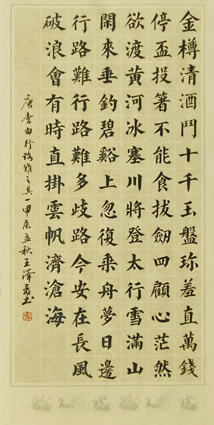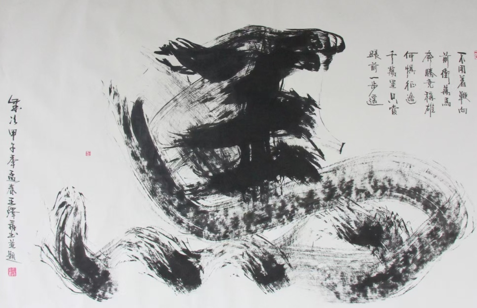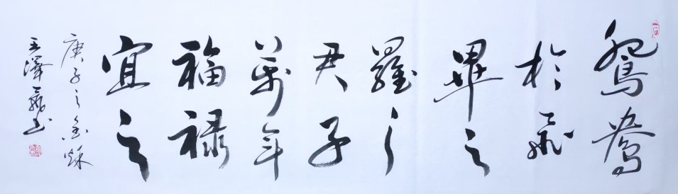 专家评述:王泽飞的作品用笔极具节奏感,沉实处不激不厉、温文尔雅,激荡处行笔如飞,一气呵成,笔下线条跃宕多姿,又富有弹性,可谓韵致盎然,师古而不泥于古,更具创新精神,在古典与现代的结合处,形成了自己有意味的形式。